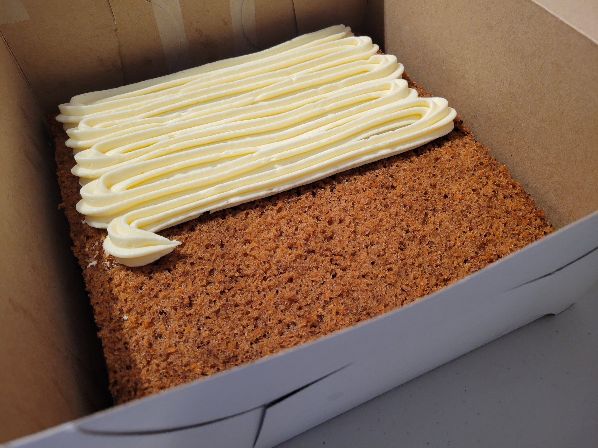 Ingredients: Flour, baking soda and powder, salt, cinnamon, nutmeg, eggs, sugar, brown sugar, vanilla, carrots, cream cheese, icing sugar, butter.